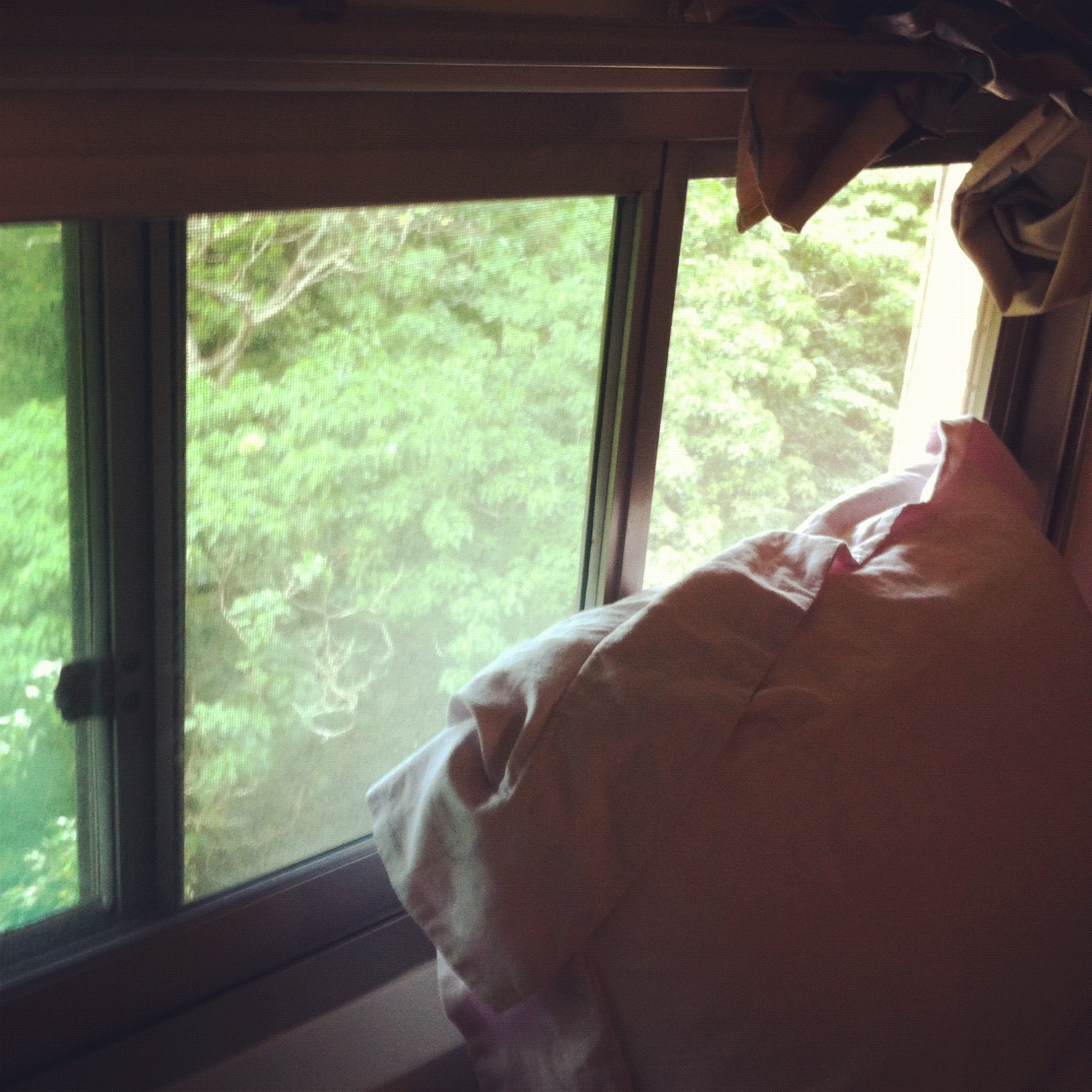 走近抱枕所倚的窗台,山坡上翠林的綠映入眼簾,耳中只有樹葉恣意沙響的吟奏,再多待一秒,難保不進入夢鄉。